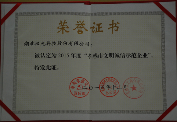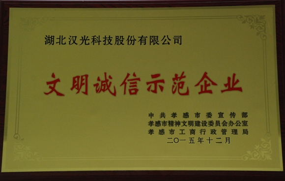 企業(yè)資訊 我公司榮獲孝感市2015年“文明誠信示范企業(yè)”榮譽(yù)稱號(hào)