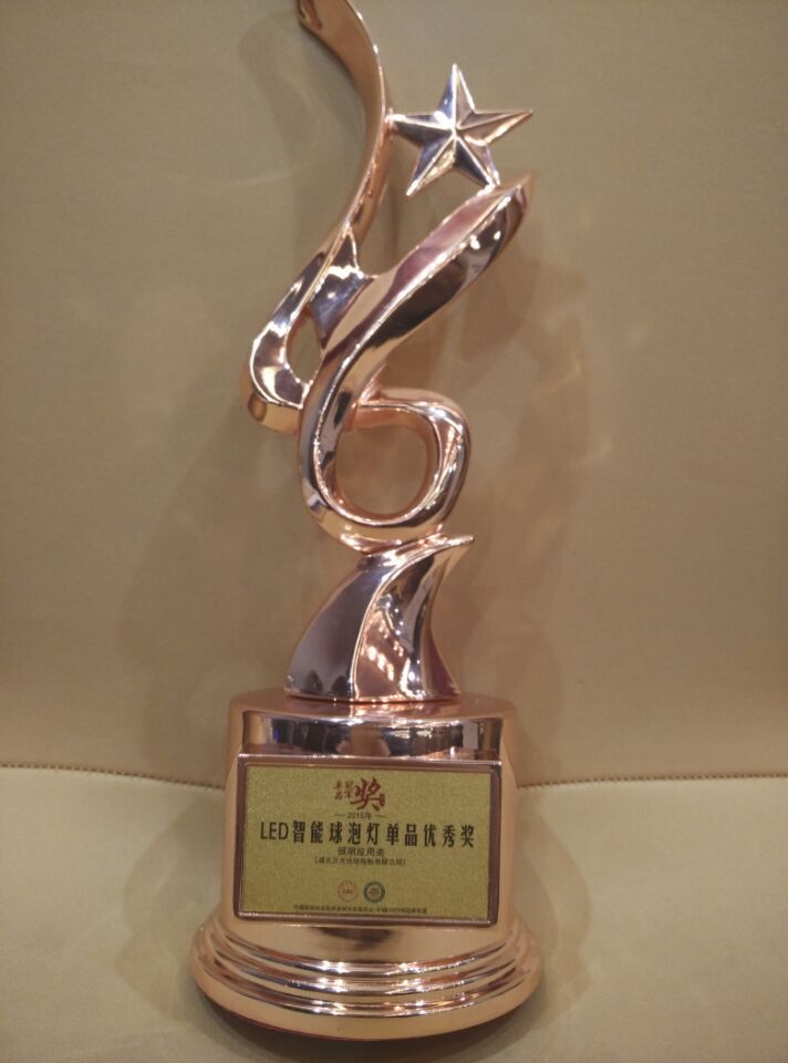 12月29日,2015中國LED照明冠軍聯(lián)盟“單品冠軍獎(jiǎng)”頒獎(jiǎng)典禮在深圳舉行,漢光光電自主研發(fā)的LED智能球泡捧回“LED智能球泡燈單品優(yōu)秀獎(jiǎng)”獎(jiǎng)杯。