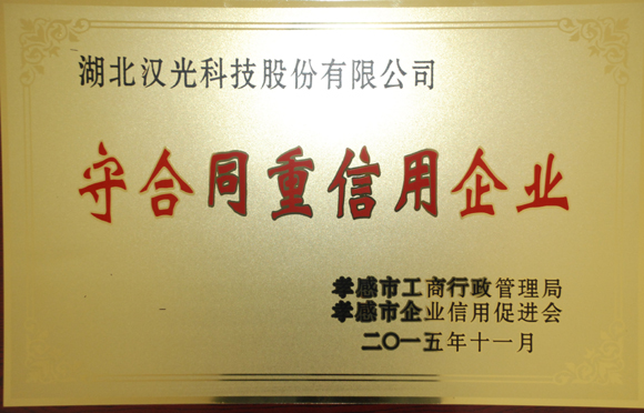 2016年3月2日,我公司獲得孝感市“守合同 重信用”企業(yè)榮譽稱號。該評選活動由孝感市工商行政管理局、孝感市企業(yè)信用促進會主辦。