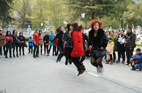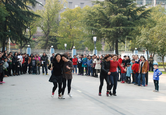 今年的比賽項目除了保留的兩人三足跑、端乒乓球接力、車輪滾滾、背運氣球和跳繩外,還增添了踩氣球比賽,受到大家歡迎,共有15個隊參加踩氣球比賽。五顏六色的氣球在女工們的腳下噼哩叭啦炸響,將比賽氣氛推向高潮。
